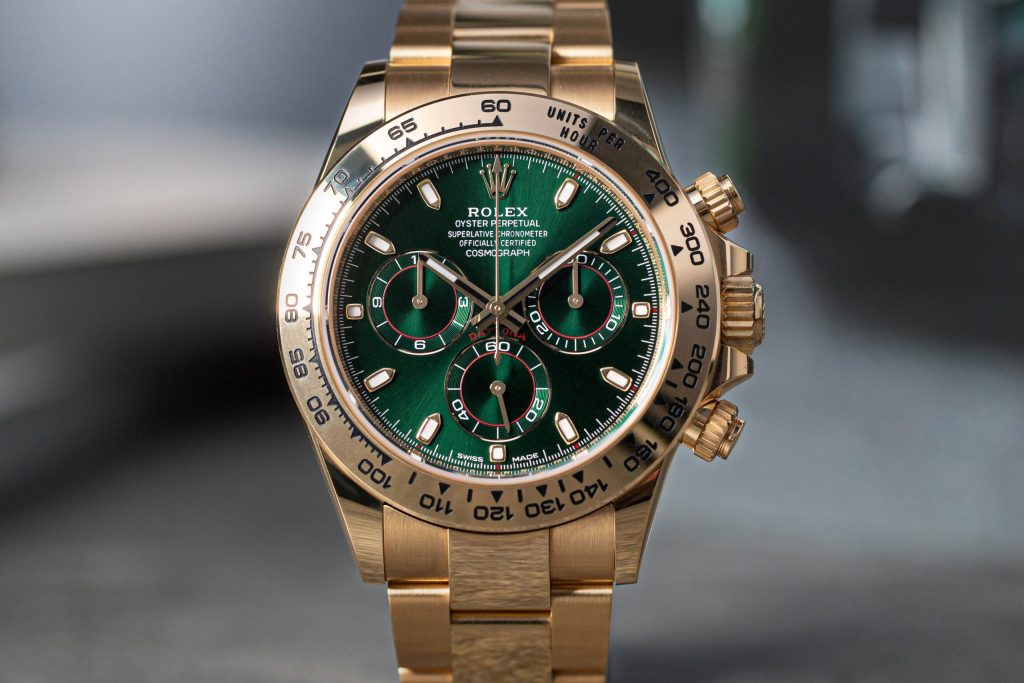 وُلدت سلسلة ساعات ديتونر في عام ١٩٦٣، في حين أن ظهور ساعة غولدي ذات الوجه الأخضر جاء متأخرًا كثيرًا، وفي عام ٢٠١٦، أطلقت رولكس ساعة Ref.116508 بمزيجها المذهل من علبة الذهب الأصفر عيار ١٨ قيراطًا ومينا أخضر زاهي اللون، الذي أصبح على الفور محط أنظار عالم الساعات. صُنع الميناء الأخضر للمنتج الأصلي من طلاء معدني خاص، والذي سيظهر تدرجًا دقيقًا من الأخضر الداكن إلى الأخضر الزمردي تحت الأضواء المختلفة، وأصبح هذا الأداء اللوني الفريد من نوعه عنق زجاجة تقني لا يمكن التغلب عليه لفترة طويلة في مجال التقليد العالي.