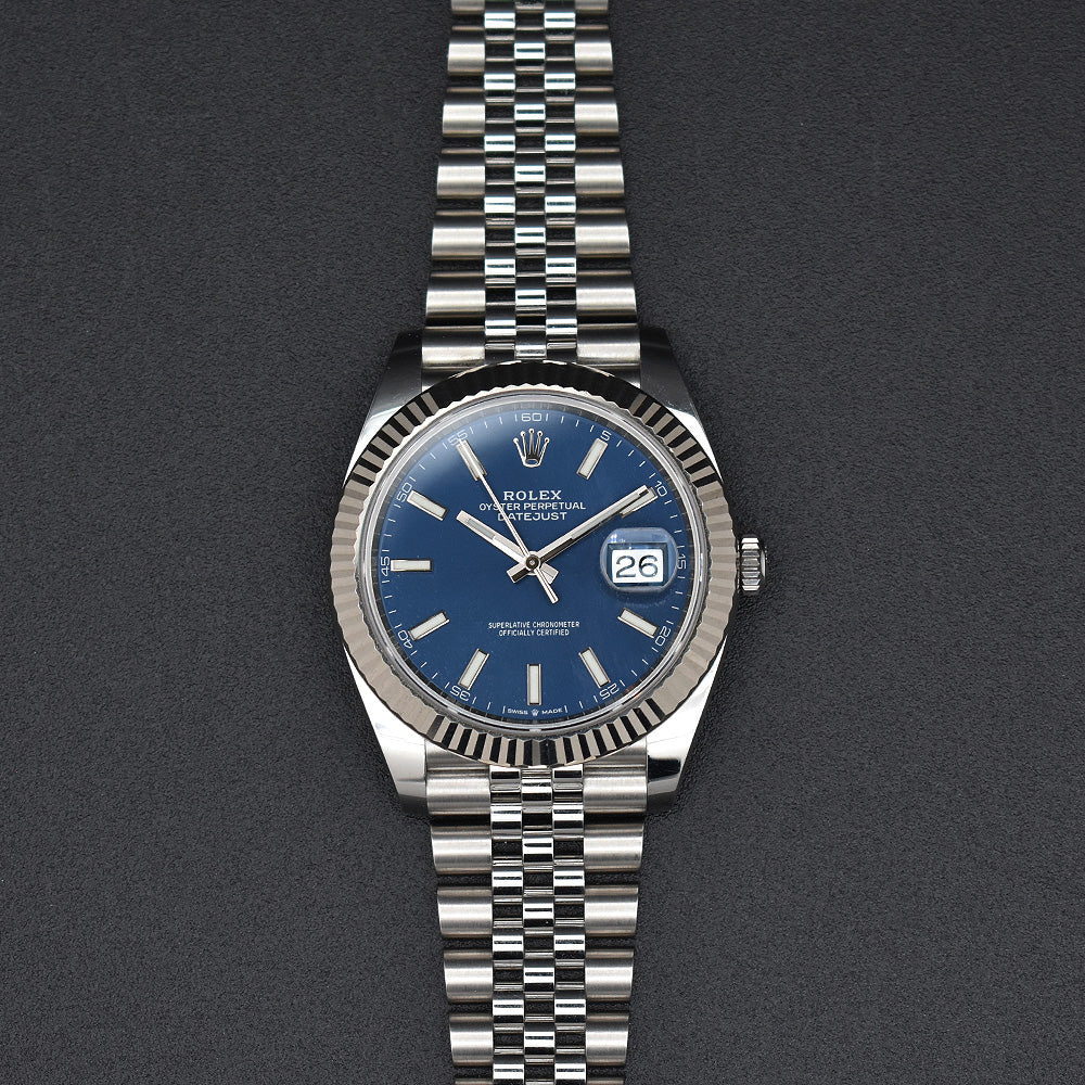 - Die blaue Scheibe ist faszinierend: Die Farbe Blau gilt als “zeitloser Klassiker” in der Welt der Uhren. Die blauen Scheiben des Modells Journal reichen von tiefem Rhodiumblau bis hin zu lebhaftem Sunburstblau, einer Kombination aus Ruhe und Kraft, die der Schlüssel zu seiner Beliebtheit ist, da es sowohl zu formeller als auch zu legerer Kleidung getragen werden kann und einen professionellen Look bietet.