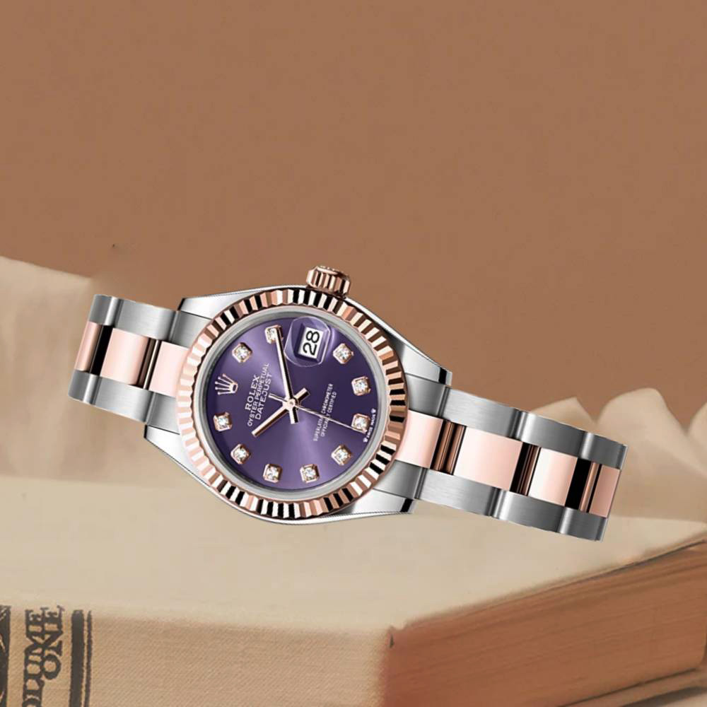 经典再现:劳力士日志型紫盘腕表复刻版 永恒玫瑰金钢 钻石时标